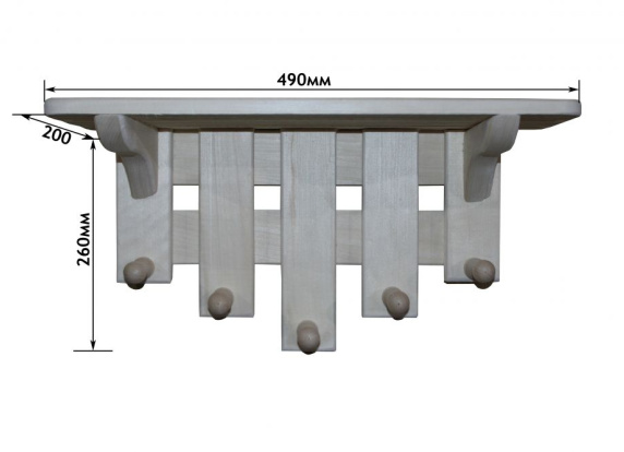 | Вешалка-полка | 600*230*180, 900*230*180, 1100*230*180, 1200*230*180 | 0,6; 0,9; 1,1; 1,2 | осина |