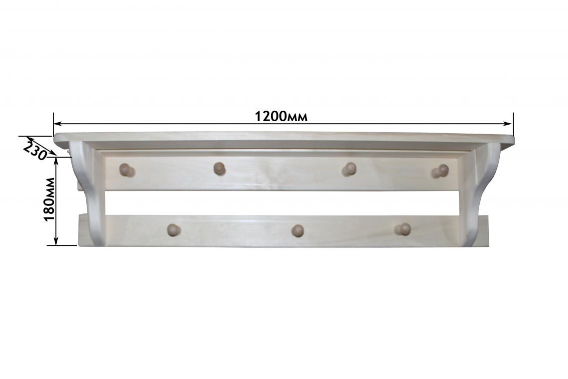 Вешалка-полка | 600*230*180, 900*230*180, 1100*230*180, 1200*230*180 | 0,6; 0,9; 1,1; 1,2 | осина |