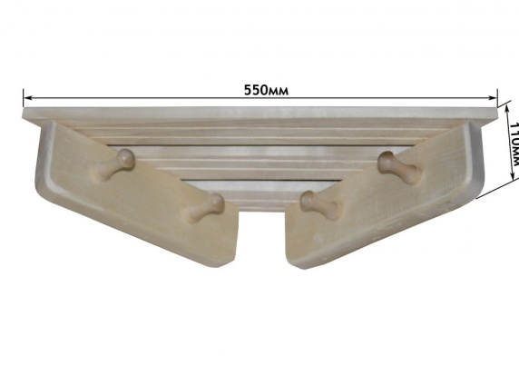 Вешалка-полка | 600*230*180, 900*230*180, 1100*230*180, 1200*230*180 | 0,6; 0,9; 1,1; 1,2 | осина |